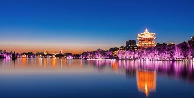 大唐芙蓉园,占地面积1000亩,其中水域面积300亩。是中国第一个全方位展示盛唐风貌的大型皇家园林式文化主题公园 ,上面也讲过,大唐芙蓉园是免费景区。虽说他是免费景区,但它有着5A景点之称。代表了大唐鼎盛时期灿烂的文明,同时,它也是西北地区最大的文明主题公园,被西安古装爱好者评为陕西最美的古装外景拍摄地,也是众多学者的常来之地。做梦回大唐的感觉,夜景色彩鲜艳,唐朝文明走廊灯火通明,也是古装扮演爱戴之地。这样的一个公园,现代人与古代交流的文化传扬之地。