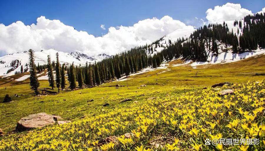 近日,民摄世界组织的新疆摄影团来到了中国四大草原之一,新疆伊犁的那拉提草原进行摄影采风,那拉提草原是世界著名的天然牧场。在这里,蓝天白云,水草丰茂,雪山松林,牛羊成群,点点毡房,给人一种绝美的生态画面。游客穿行其中,犹如行走在绿色的大草甸上,清澈的溪流穿过绿色的大草甸,潺潺的流水声不绝于耳,让人仿佛置身于仙境之中,让人不禁想要停下来用相机记录下这片美景。