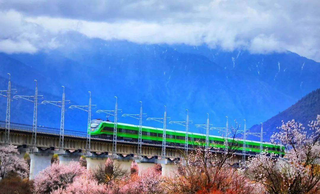 沿着拉萨河谷一路向下,满目皆是壮阔的河谷春色,进入林芝段,特别是米林区域附近,可以看到雅鲁藏布江两岸连绵的桃花林,最美的西藏春色都在拉林铁路上了~