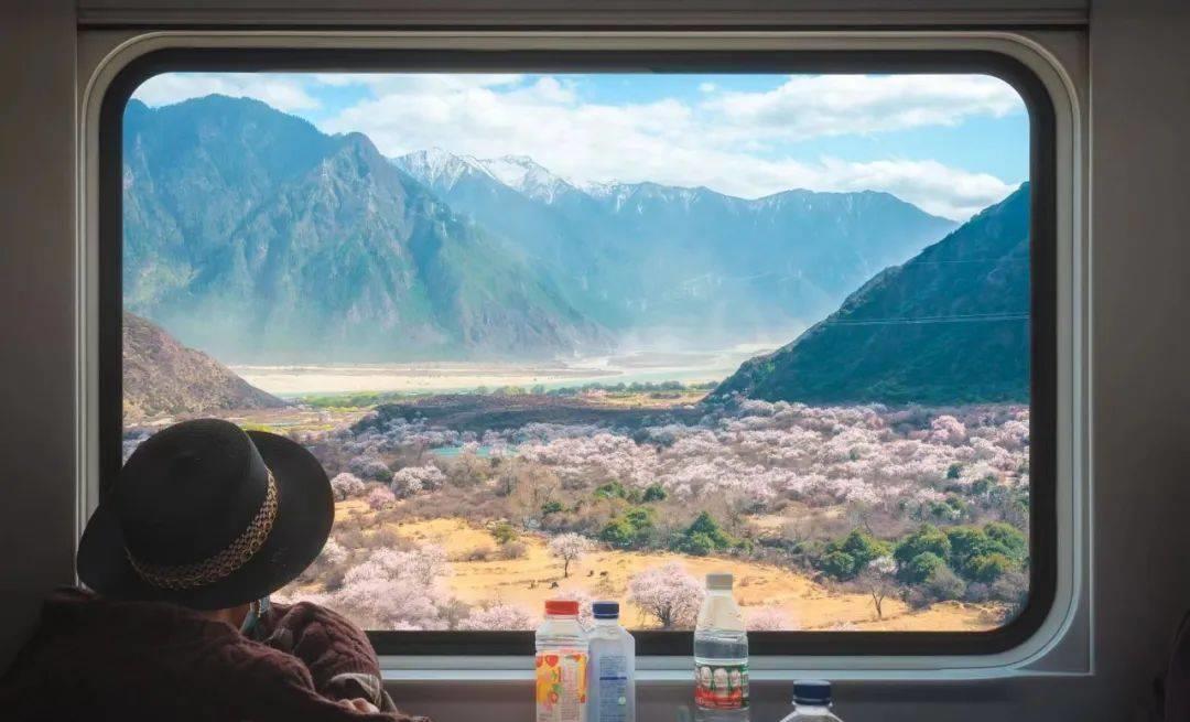 拉林铁路从开通以来,一直被人称赞为绝佳的景观路线~三月桃林芳菲,坐上从拉萨开往林芝的火车,沿途的桃花足以让人心驰神往~随便按下快门键就是绝佳的一幅风景画,车窗就是天然的画框。