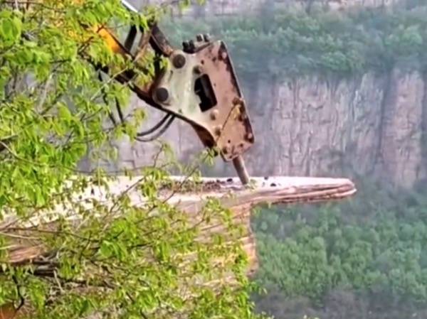 要知道,“试胆石”已经网红化,除了在当地很出名,在社交网络上也很出名。如此之下,但凡“试胆石”出事了,那么所带来的负面影响自然也是巨量的。而面对这种不确定性,既然“提醒”不能阻止那些莽撞的游客,也只好砸了省心。