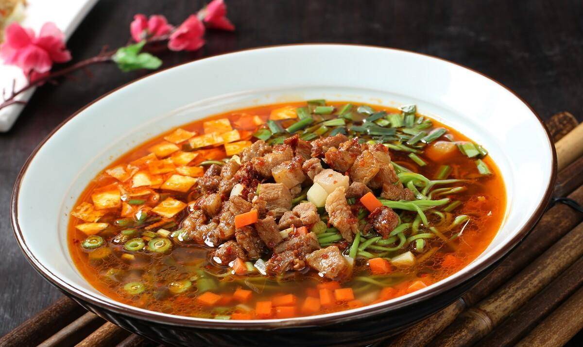 臊子面:接近于兰州拉面,是一种带有汤汁的面食。
