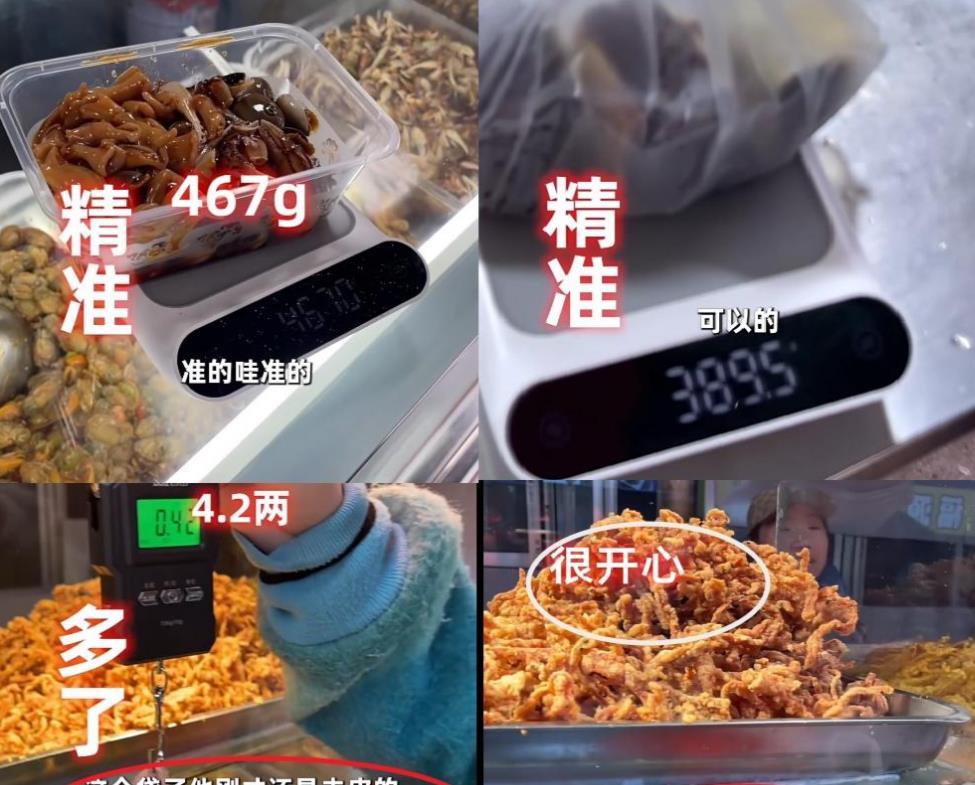 很多小贩看到UP主拿称,一点都不慌,尽管称,只多不少;