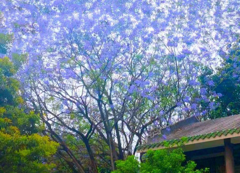 为什么会这么说呢?主要是因为,刚才提到的那些花儿都有着非常高的人气和知名度。因此,每当到了人间最美四月天的广州,人们踏春赏花,肯定会优先想到这些花儿。然而,在广州的四月天,还有一种相对而言比较小众。但是,它花开的时候,具有非常高的观赏价值。而这种相对而言比较小众,花期在广州四月中下旬的花儿,它的名字叫蓝花楹。提到蓝花楹,可能很多朋友都不知道它具体长啥样。