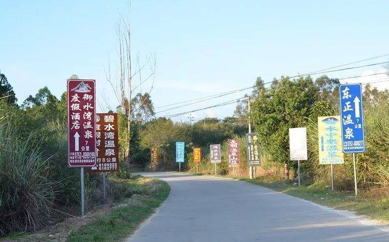 自驾去热汤村,出了安墩镇后,就不会担心迷路了,这是一条通往河源紫金县的乡道,走了一段路之后,看路两边竖立的温泉广告琳琅满目,昭示着离温泉镇的远近,来这里的人一般是奔着热汤温泉去的。