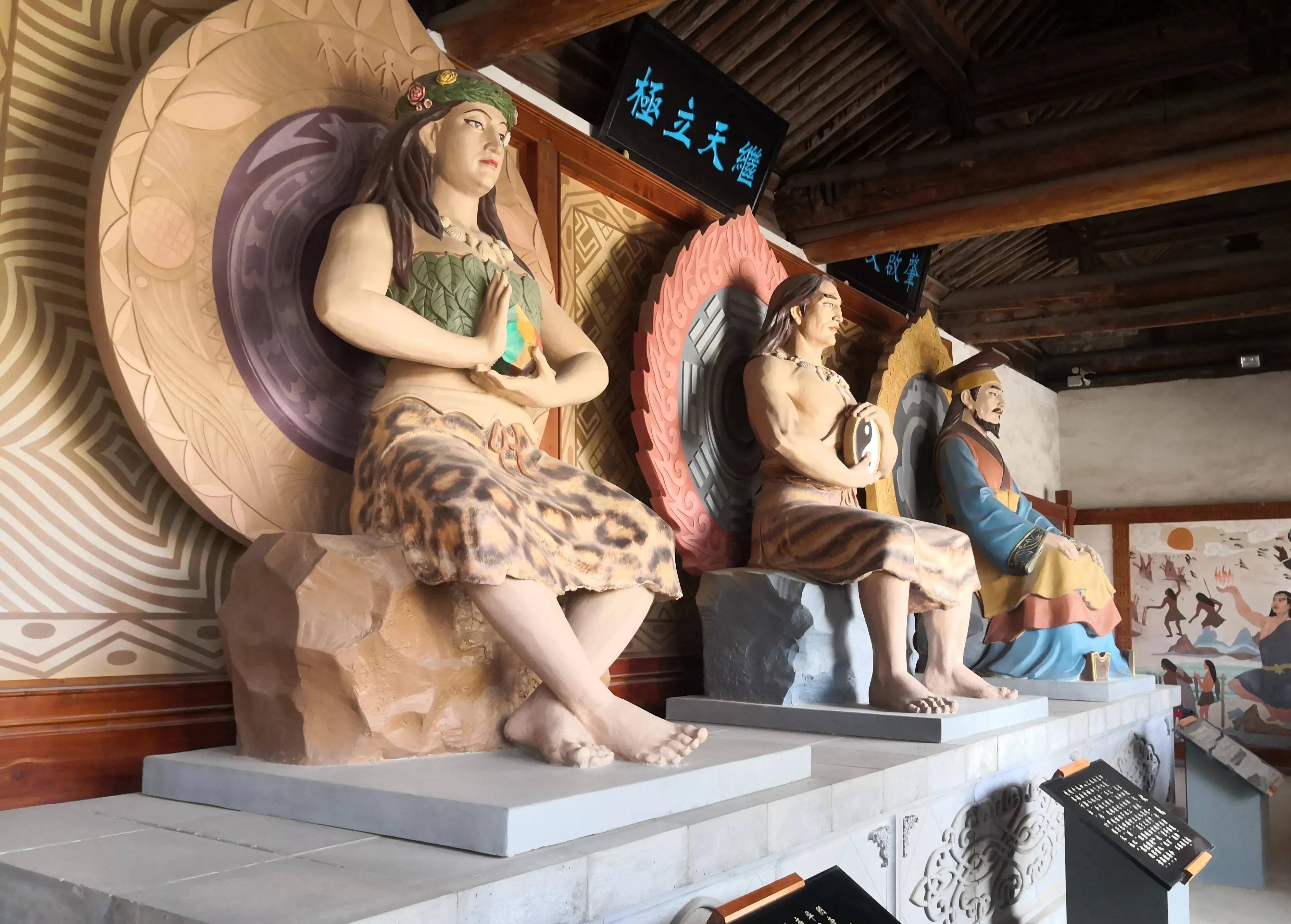 太昊伏羲殿位于院内正南中央最高处,看上去至为雄浑大气,里面供奉有伏羲、女娲和皇帝三位华夏始祖塑像。伏羲殿前坐落着壤驷赤、石作蜀、秦祖等先贤的殿堂,他们均是出自甘肃本土的历史牛人,是孔子门生,七十二贤之一。