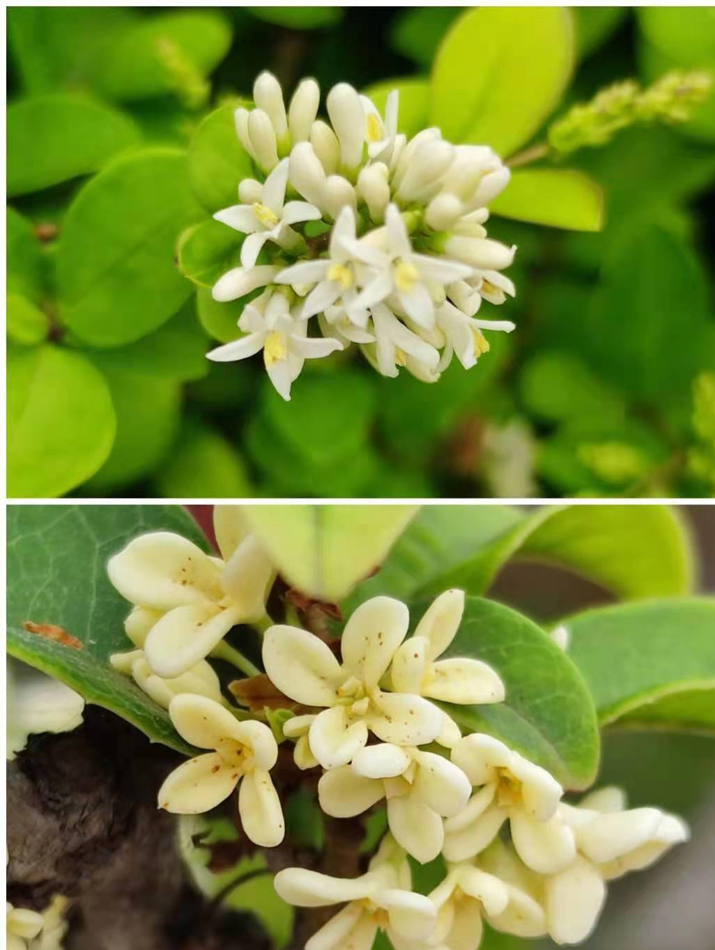 上图是金叶女贞;下图是四季开花,四季飘香的四季桂。