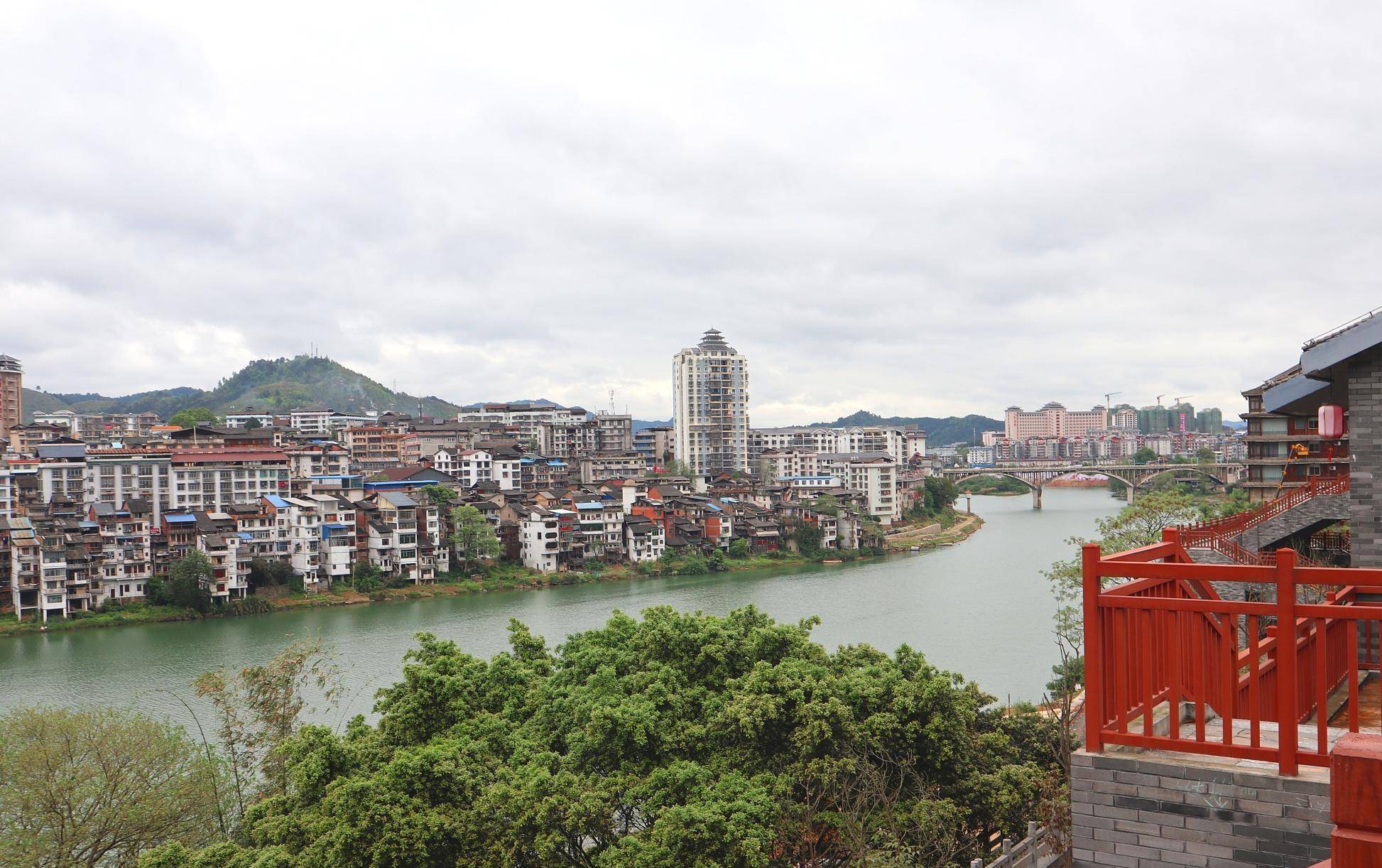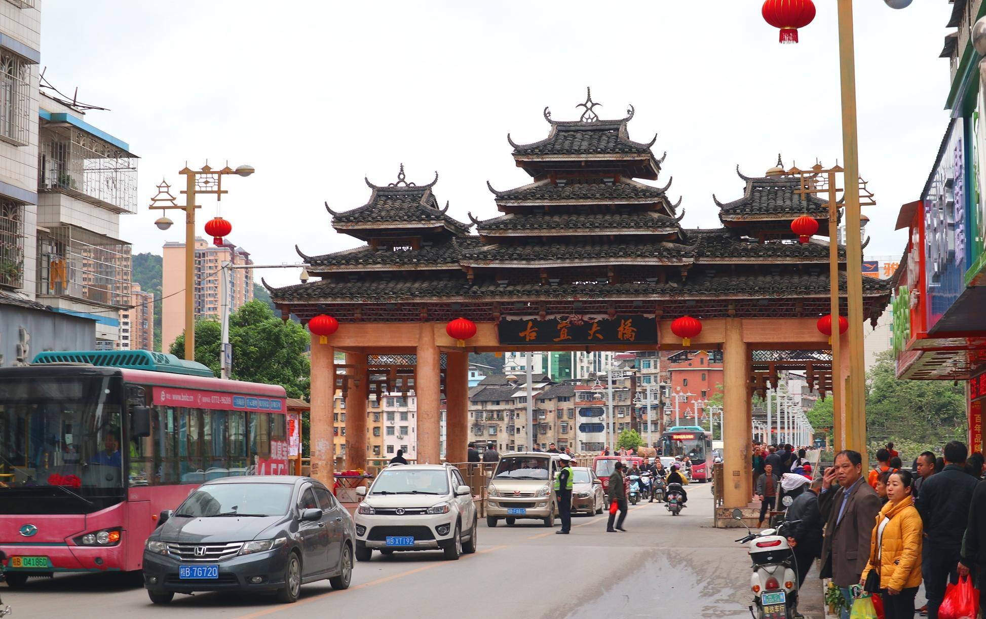 三江侗族自治县位于湖南和贵州交界处,隶属于广西柳州市,三江侗族自治县是全国七个侗族自治县中侗族人口最多的一个县。图为古宜大桥,我从程阳八寨到河西下车,步行过大桥,桥头就是“月亮街”。