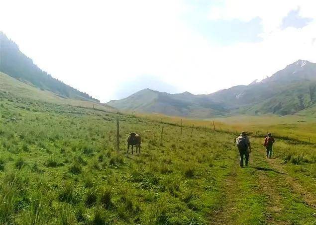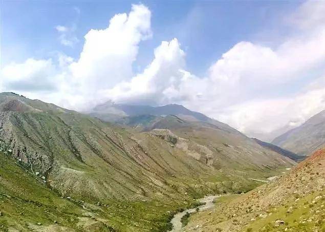 远处是绵延不绝的雪山,两侧分别是陡峭的小台兰河谷和琼台兰河谷,这里草原开阔,降雨频繁,周围峰峦迭嶂,一派郁郁葱葱,绿山碧野、满目葱翠。偶有一两顶白色的牧帐点缀其间,那袅袅升起的炊烟和委婉的牧歌,使这里充满了令人陶醉的诗情画意。