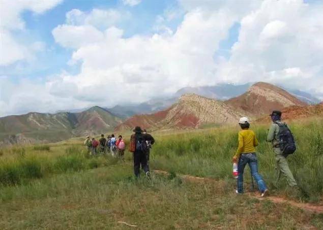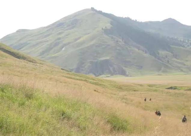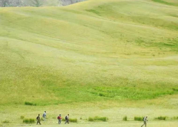 好在大家都顺利的登上了山顶。队伍达到山顶后,阿热牧场就展现在大家的眼前,站在阿热牧场和平台子牧场宽广平坦的草地上,眺望浩瀚起伏的草原,吹着山风,格外宜爽。