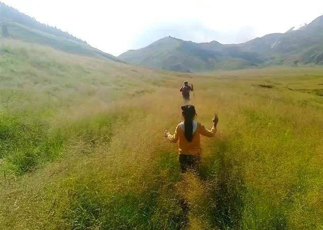 下午队伍顺利到达平台子牧场,这里草很深