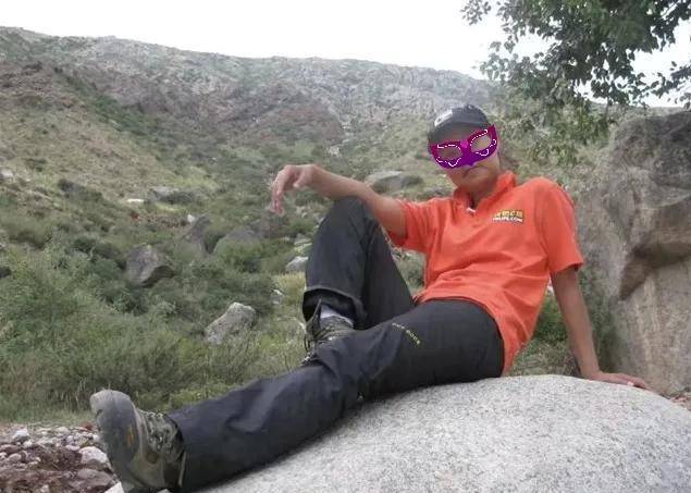 这位蒙面大侠,人称“草上飞—无心”。他肩膀上背的是前面那位“宁静致远”的包包。背了一路,那个包包份量不轻,真难为这位侠客了,平时他总是冲到队伍的最前面,想找到他的人影,很不容易,哈哈,可是这次,因为这个包包,他才“遵纪守法”了!老老实实跟着队伍走。