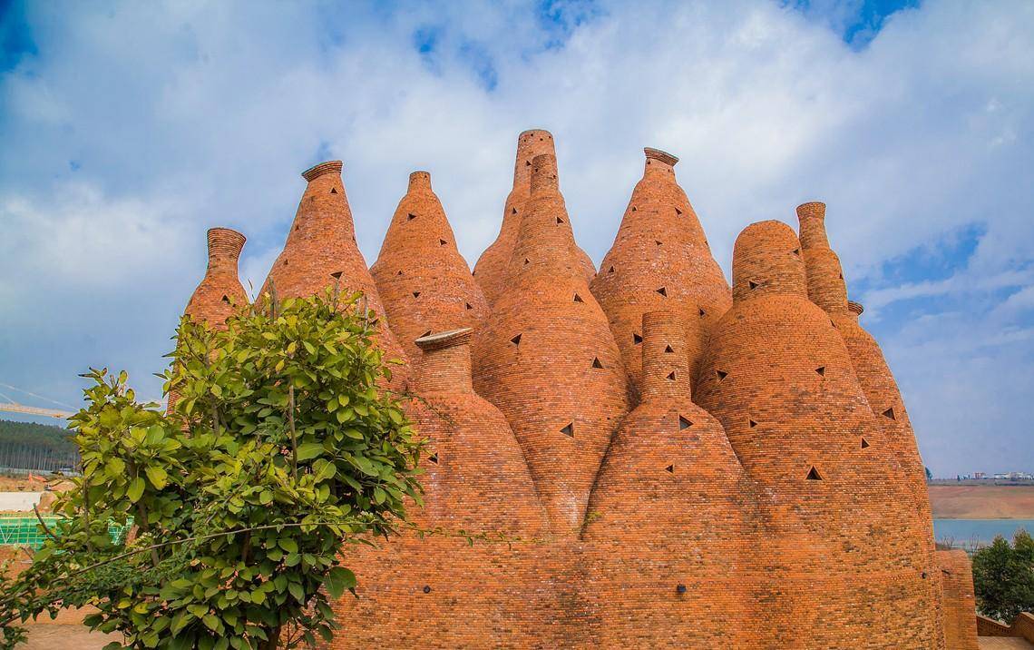 万花筒艺术庄园超现实的建筑外观,仿佛进入了童话世界。超大的酒瓶形状、红彤彤的外墙、高耸入云的气势,形象生动地传达了一种蓬勃向上的精神。