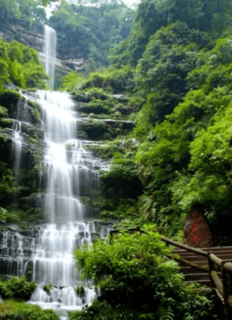 碧峰峡是国家AAAAA级景区,因四季青碧而得名,被丰富的植被层层包裹,覆盖率高达95%以上。高大的树木郁郁森森,山间雾气弥漫,犹如仙境,素有“天府之肺”的美称。