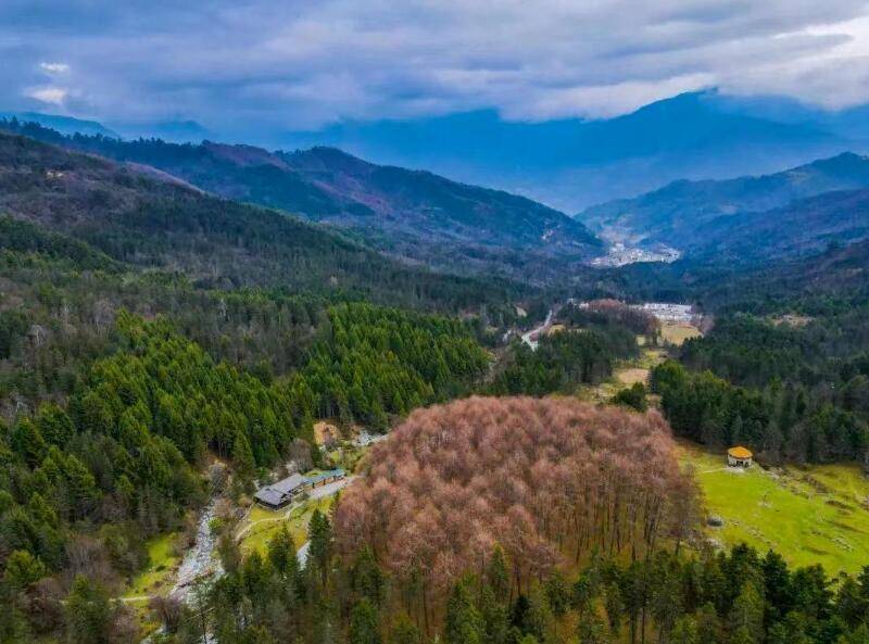 一大片山区海拔高低起伏,地形纵横沟壑。一眼尽收浩瀚林海,苍翠的亚热带常绿阔叶林格外幽静神秘,完全是大自然的森林氧吧。