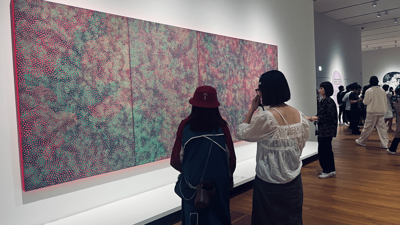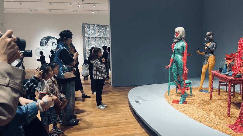 在该馆中,当下最受欢迎的要数草间弥生的展览。“草间弥生:一九四五年至今”是著名艺术家草间弥生在日本以外的亚洲地区举行的最大回顾展,展出逾200件来自亚洲、欧洲及美国的博物馆主要藏品及私人藏品、M+藏品及草间弥生的个人收藏。展览以全新眼光诠释草间弥生逾七十年的创作生涯,并邀请观众一同发掘艺术启发变化的力量。这次回顾展呈现了草间弥生作品中蕴含的核心美学元素,凸显贯穿当中的关于生与死的哲思,以及她对相互连结的追求,并探讨草间弥生如何成为全球文化偶像,创作出今天引人入胜且极具影响力的作品。