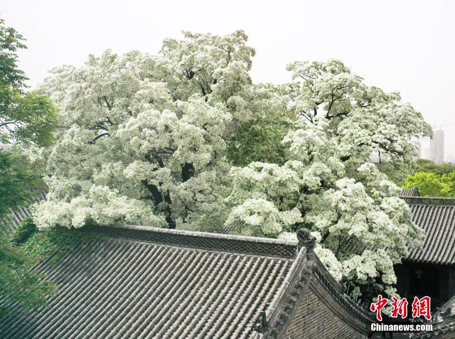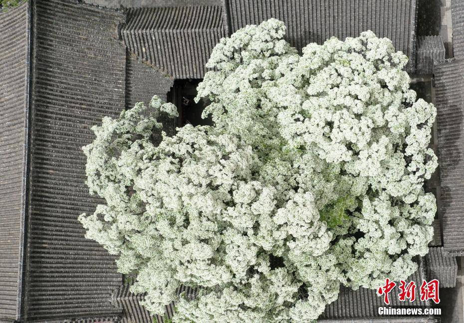 原标题:山东济宁:三百多岁流苏树繁花绽放