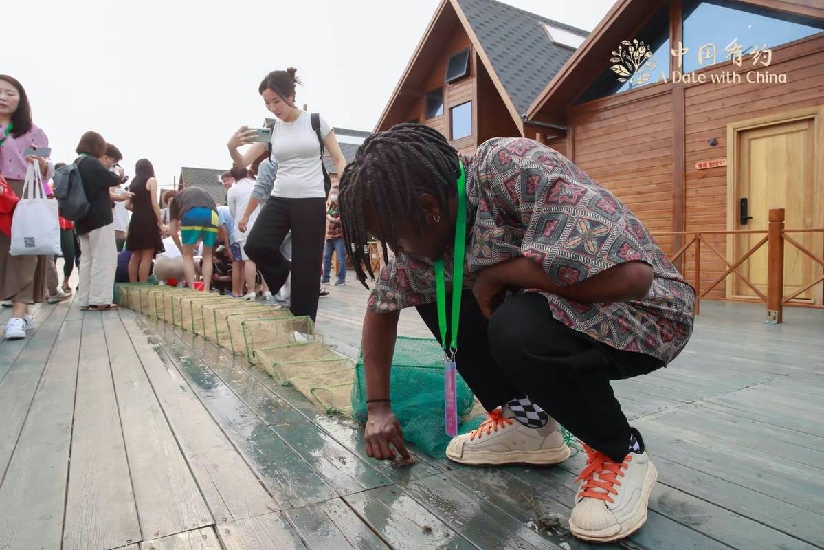 喀麦隆籍博主沙力正在体验“捕鱼笼”