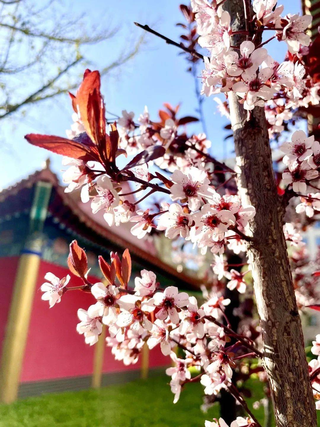 春光明媚,燕达园区里的玉兰花、杏花、桃花、梨花、海棠花、丁香花,你不让我,我不让你,都争先恐后尽情地绽放自己的美,红的像火,粉的似霞,白的如雪……朵朵展颜、簇簇相拥、枝枝妖娆。树木冒出了嫩绿的新叶,小草随着微风唱歌起舞,园区里处处散发着春的生机,一派春意盎然的景象,美不胜收。