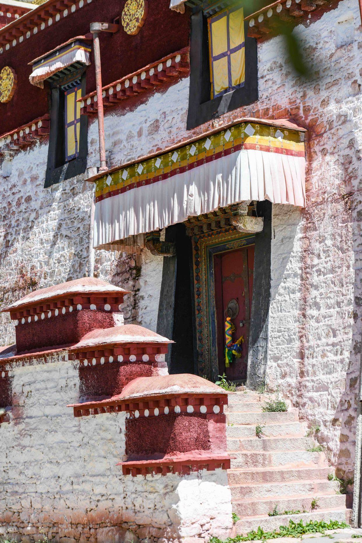 殿内北部就供奉多座灵塔和造像,在众多灵塔之间还供奉着第八世达赖、第十三世达赖以及吉扎仓一些著名的高僧、活佛造像,除此之外,梁柱和墙壁上还挂有许多狰狞的面具,极为恐怖。小编第一次看到的时候差点吓到了,所以如果有带小孩的,一定要提前问问清楚,免得吓到小孩子。