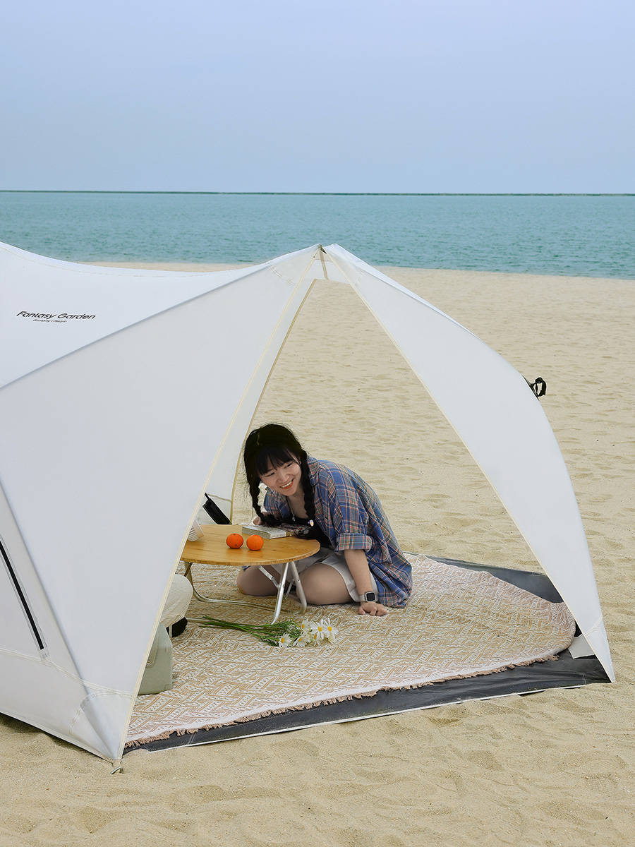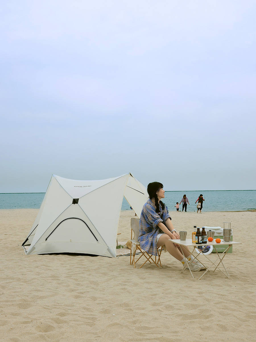 春夏气温比较炎热,所以帐篷一定要考虑到通透性,其次就是搭建,沙滩露营本就追求的是放松闲适,所以可快速收搭的轻量化帐篷是首选,省心又省力。