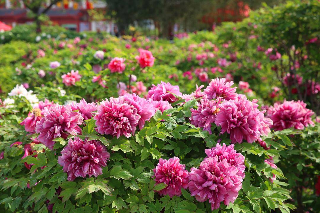 高级园艺师孙文海:“咱百花园百年以上的牡丹有500多颗。另外有明代牡丹王。你像玉翠荷花。还有铜雀春这都是明代牡丹王,现在形成了明清牡丹王群,都是两三米高的大牡丹。”