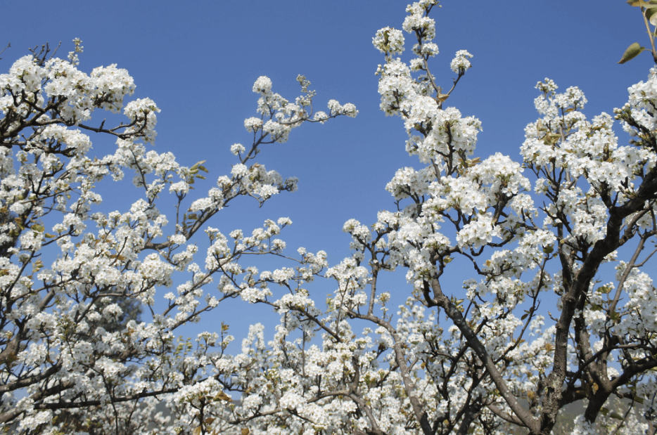一树一树梨花开,无限春光在梨园。梨花一团团、一簇簇,洁白如雪,美丽醉人。在和煦的春光下,朵朵洁白的梨花在微风中摇曳,吸引着过往游客前来踏青赏花。
