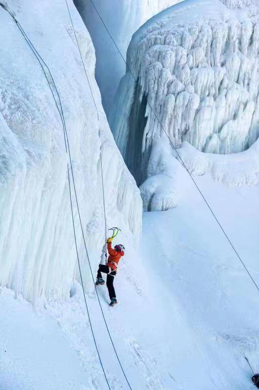 3月18日的长白山北景区白雪皑皑,长白瀑布呼啸而下,倾泻的天池水发出隆隆响声,大自然的鬼斧神工为瀑布两侧雕刻了数十米高、嶙峋嵯峨的冰壁......这天,来自国内外的攀冰爱好者齐聚此地,戴上精良炫酷的专业装备开启攀冰挑战。“太壮观了!希望更多能人来这里体验攀冰的乐趣!”来自美国的攀冰爱好者曾山发出阵阵感叹。