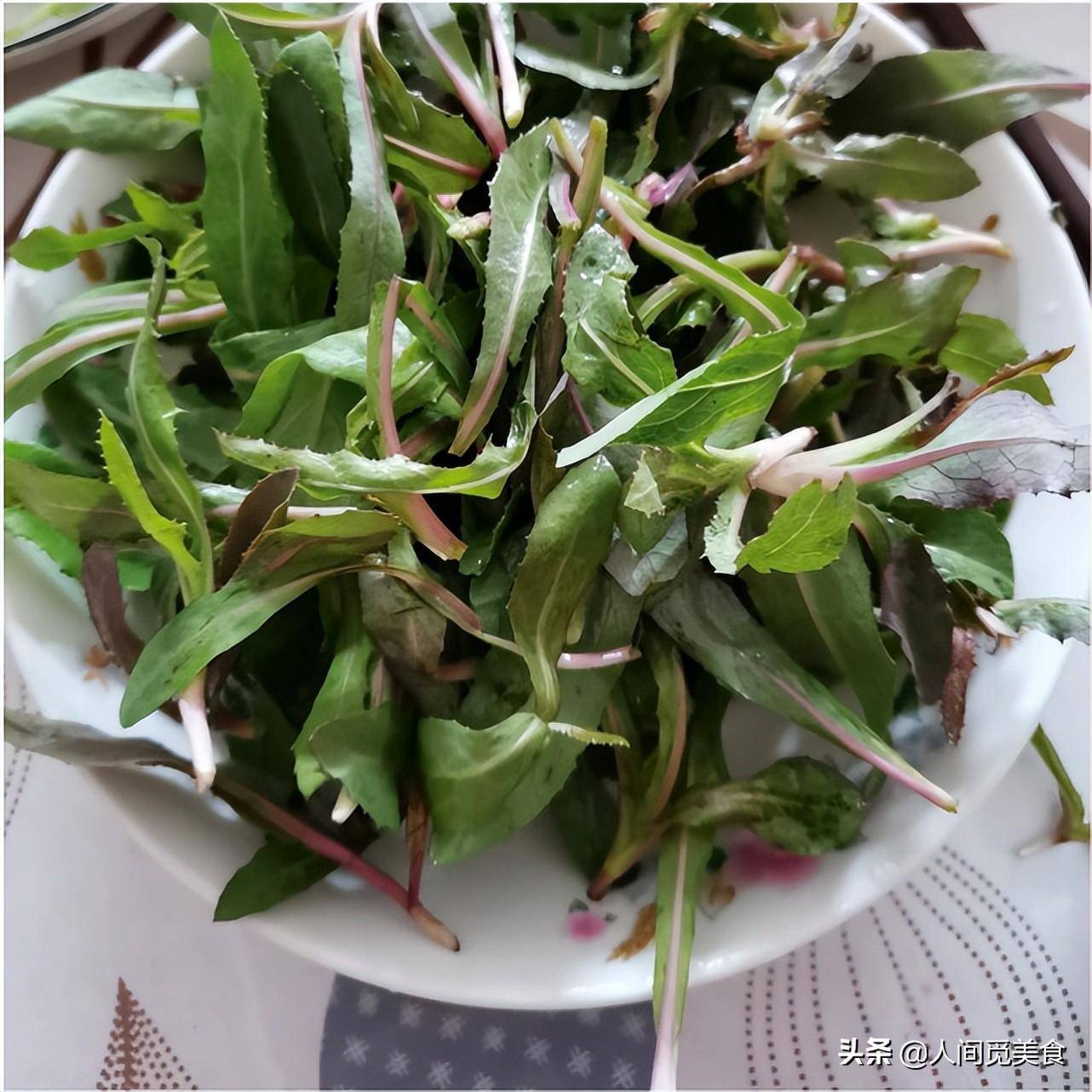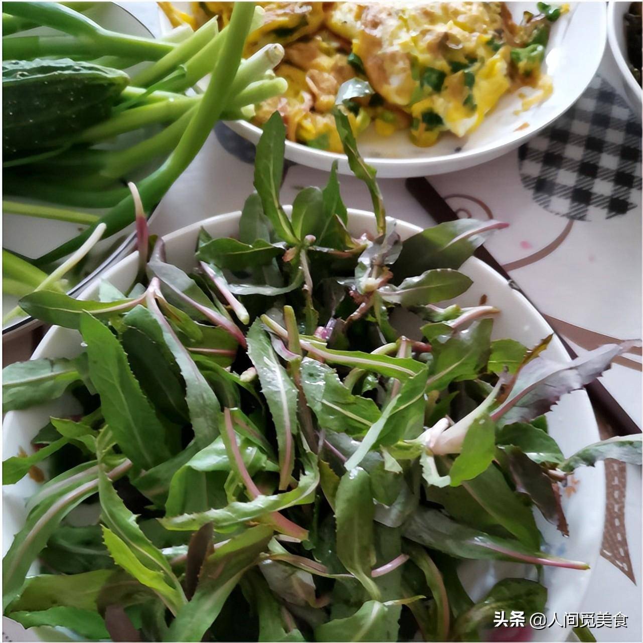 因为婆婆年纪大了,牙口不好,不爱吃肉了,所以准备的都是婆婆爱吃的东西,像葱花炒鸡蛋、小米粥,还有一盘野菜。这盘野菜来头可不小,一般都叫它苦苦菜。苦苦菜的叶子多汁而且很嫩爽,用它来做汤有民间第一汤的美誉,吃到嘴里第一口感是苦,苦之后却留有甘甜,有点像喝浓茶一样,吃到最后才感觉到绵长的香味,让人意犹未尽。