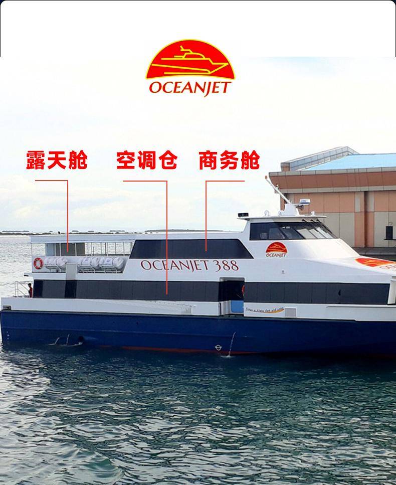 oceanjet船有三个仓位,2023年码头购买船票价格是:露天舱800比索,经济舱800比索,商务舱1200比索。一般某宝也可以代订,费用稍微贵一点点。
