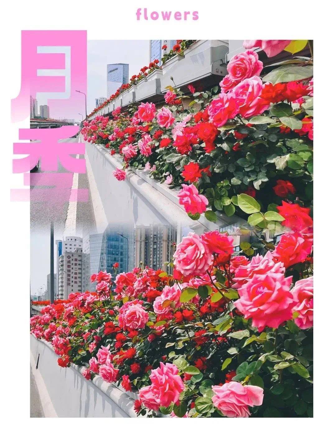 同时,考虑到桥上的景观花卉维护较难,因此适应性强、抗逆性好的植物成了选择重点。经过选择,月季、三角梅等成功胜出,所以就有了多个品种的月季在二环高架上的应用。为培育筛选出兼具景观美化和生态效益的月季花植,筛选适应本地气候、抗性强的月季品种,成都作出了许多努力。