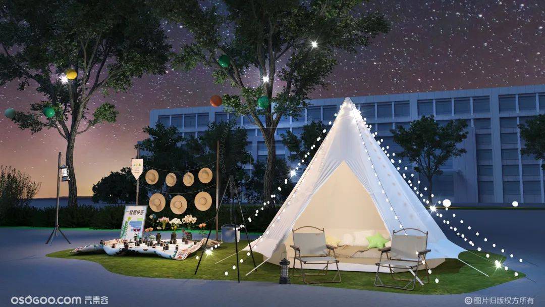 对于设计小伙伴来说,城市里的露营项目常用于一些生活市集、后备箱摆摊,往往会用到帐篷、彩灯、躺椅组合而成的打卡空间,同时添加一些品牌展示,互动小游戏,烧烤饮食等娱乐活动,不需要很专业的露营装备,重点在于一个休闲、舒适、安全的氛围,让游客可以留下美好的照片和回忆。