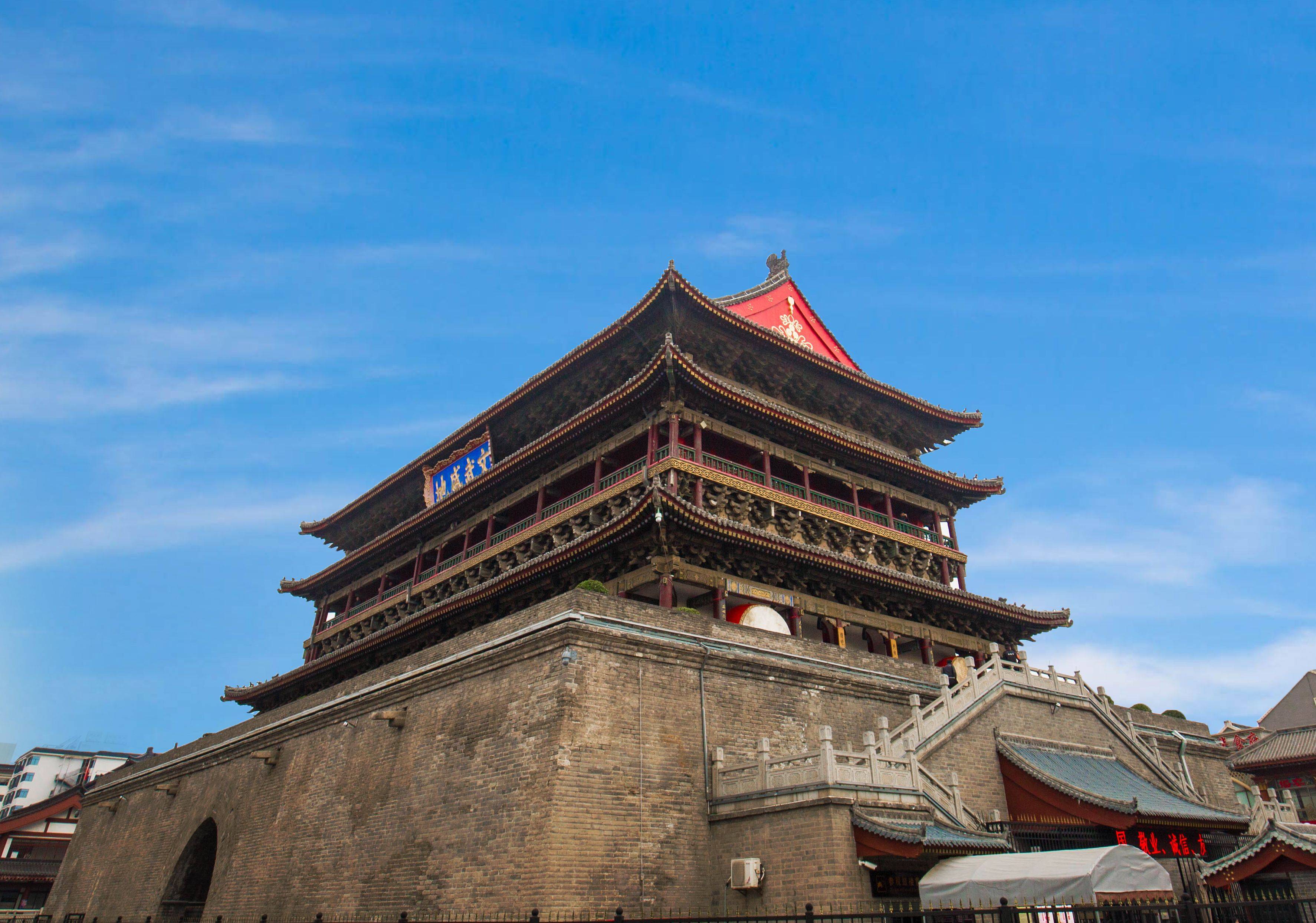 而鼓楼是所存在中国最大的鼓楼,明洪武十三年(公元1380年)建成,位于西安城内西大街北院门的南端,东与钟楼相望。古时楼上悬挂着一面大鼓,每日击鼓报时,故称“鼓楼”。