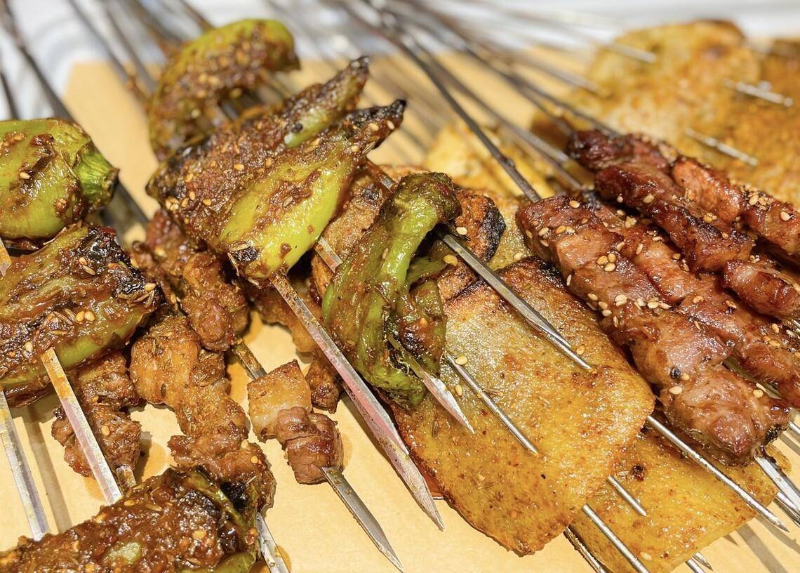 山东烧烤,自助顶流,山东除了淄博,还有徐州、青岛、临沂、济南等地,各有特色,如青岛烤肉以牛肉和海鲜为主,临沂烤串则以羊肉和内脏为主,济南烤鱼则以鱼为主食材。