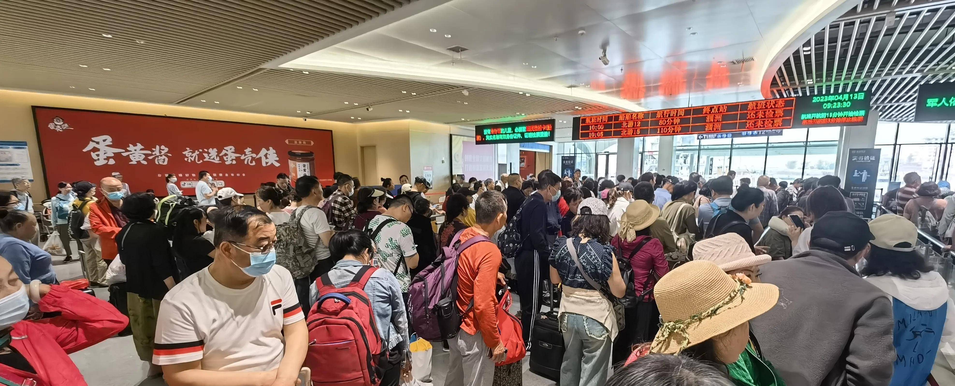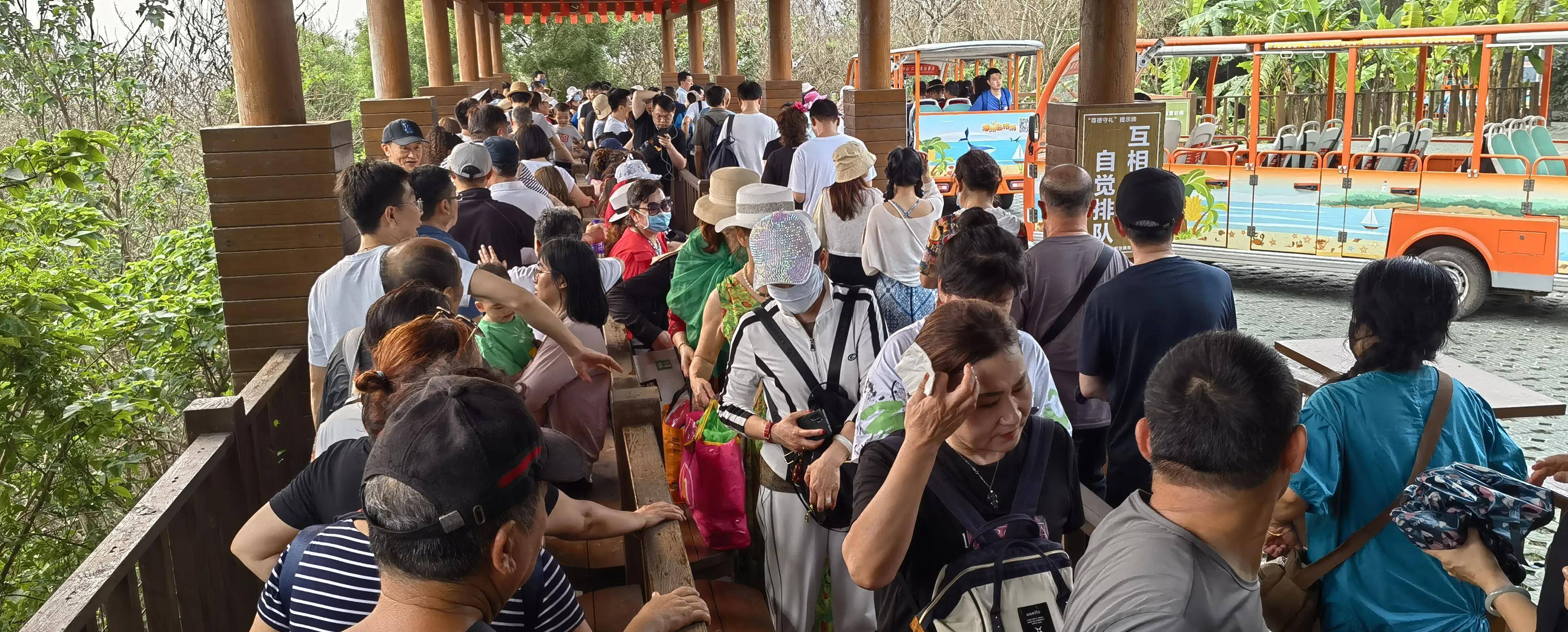 2023年4月13日。前往涠洲岛的海运码头人山人海。而涠洲岛鳄鱼山景区入口和停车场都排成了数百米长队,甚是火爆。