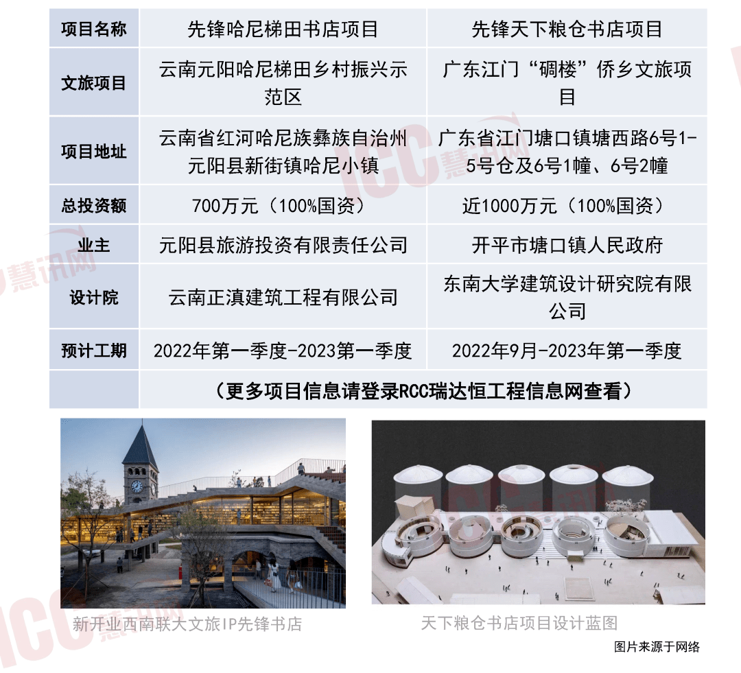 近年来,先锋书店遭受着疫情与互联网等客观环境的多重裹挟,不但没有退缩,反而另辟蹊径,将书店“搬进”乡村文旅片区,实现年度客流量近1亿人次,营业额超22亿元。其以旧造新的“书店+文旅”模式迅速成熟,加速向乡村文旅产业扩张,RCC瑞达恒报道预计23年完工的云南元阳先锋哈尼梯田书店和广东江门先锋天下粮仓书店项目信息。