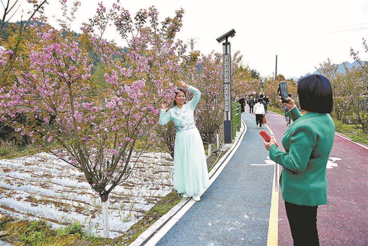 2020年,新街村实施美丽乡村建设,沿村内老峡河建起樱花大道。不久,创业能人向辉在该村建起樱花园,与樱花大道联接成片,不仅提升了乡村颜值,更引来大量游客前来游玩,为当地农民增收提供新渠道。