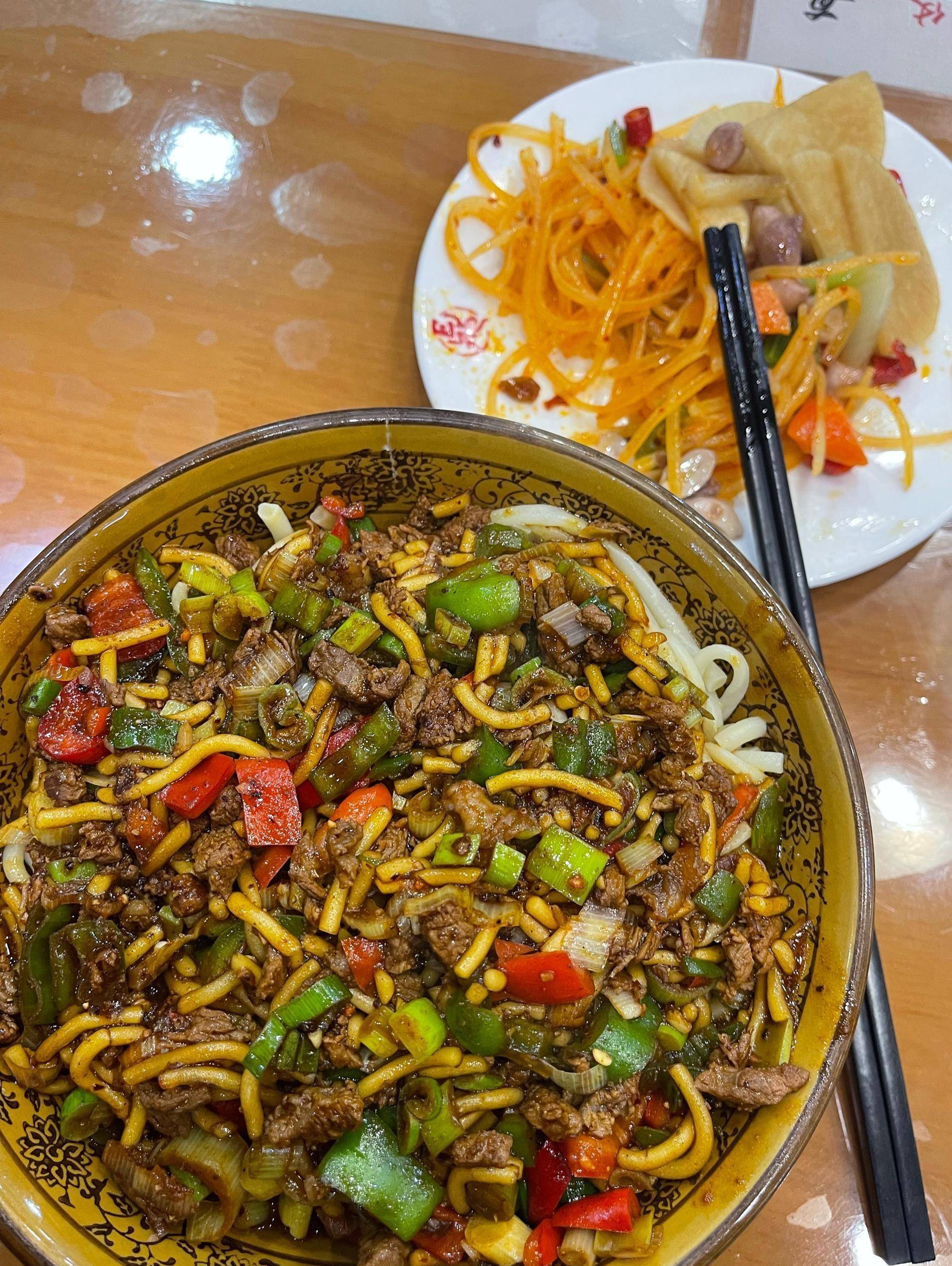 晚餐吃了个炮仗面,分量好大,撑死了。