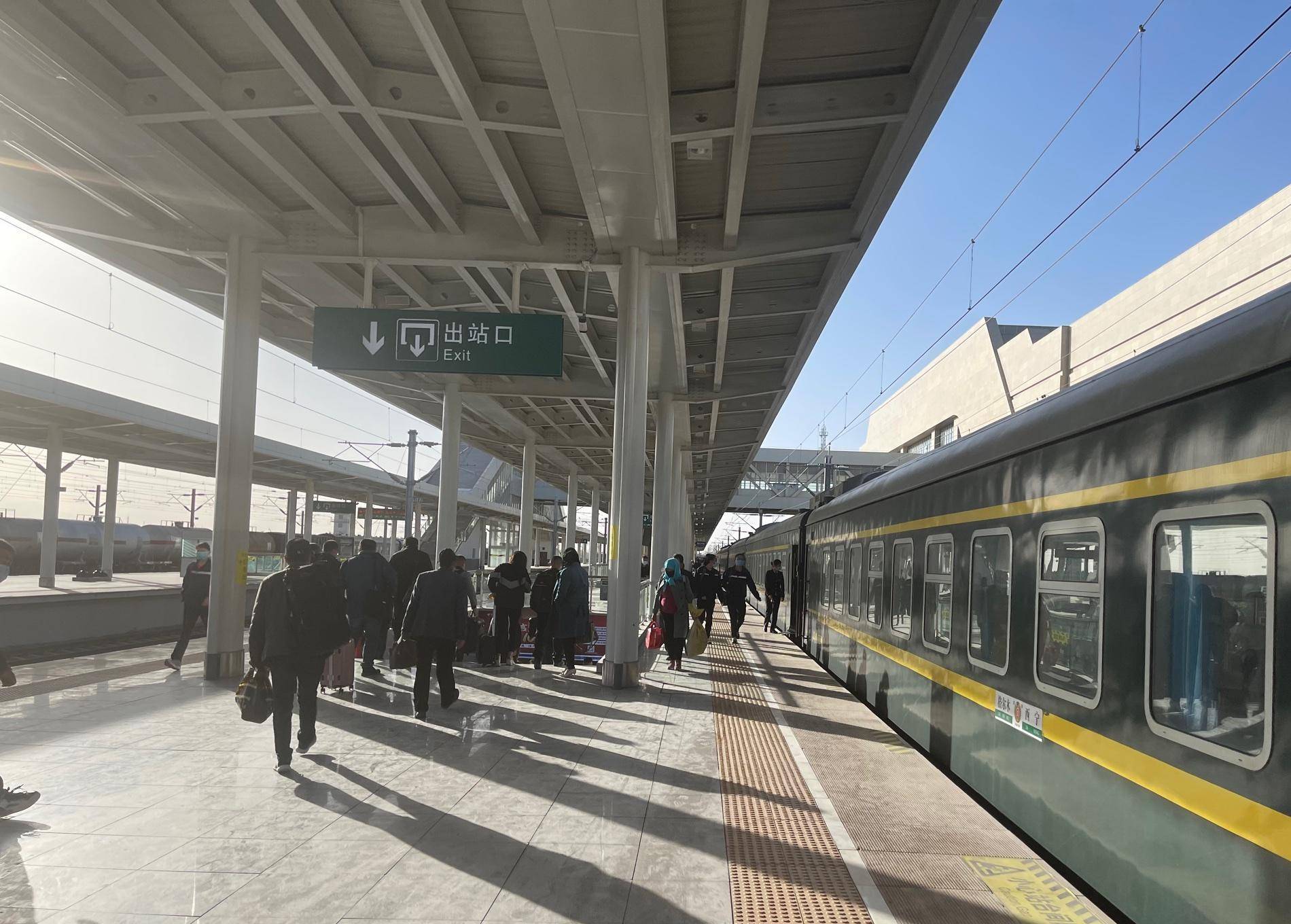 察尔汗站,停车2分,上下车的不少