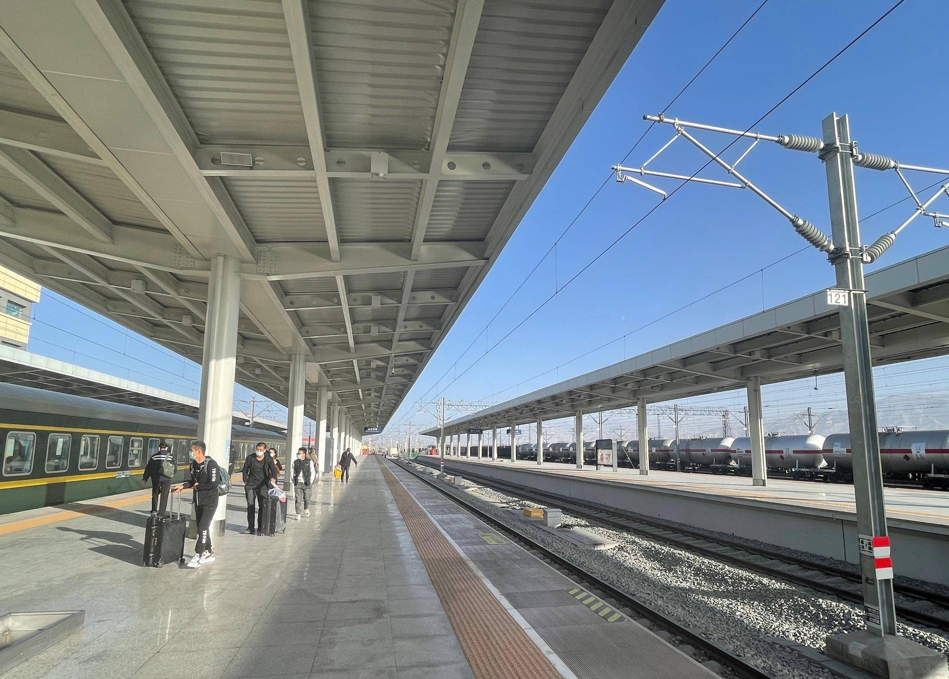 锡铁山站新站房,新老两个站房。右侧分出的应该是矿区专用线。乘降所,只能车补,或者作为到达站在窗口买。