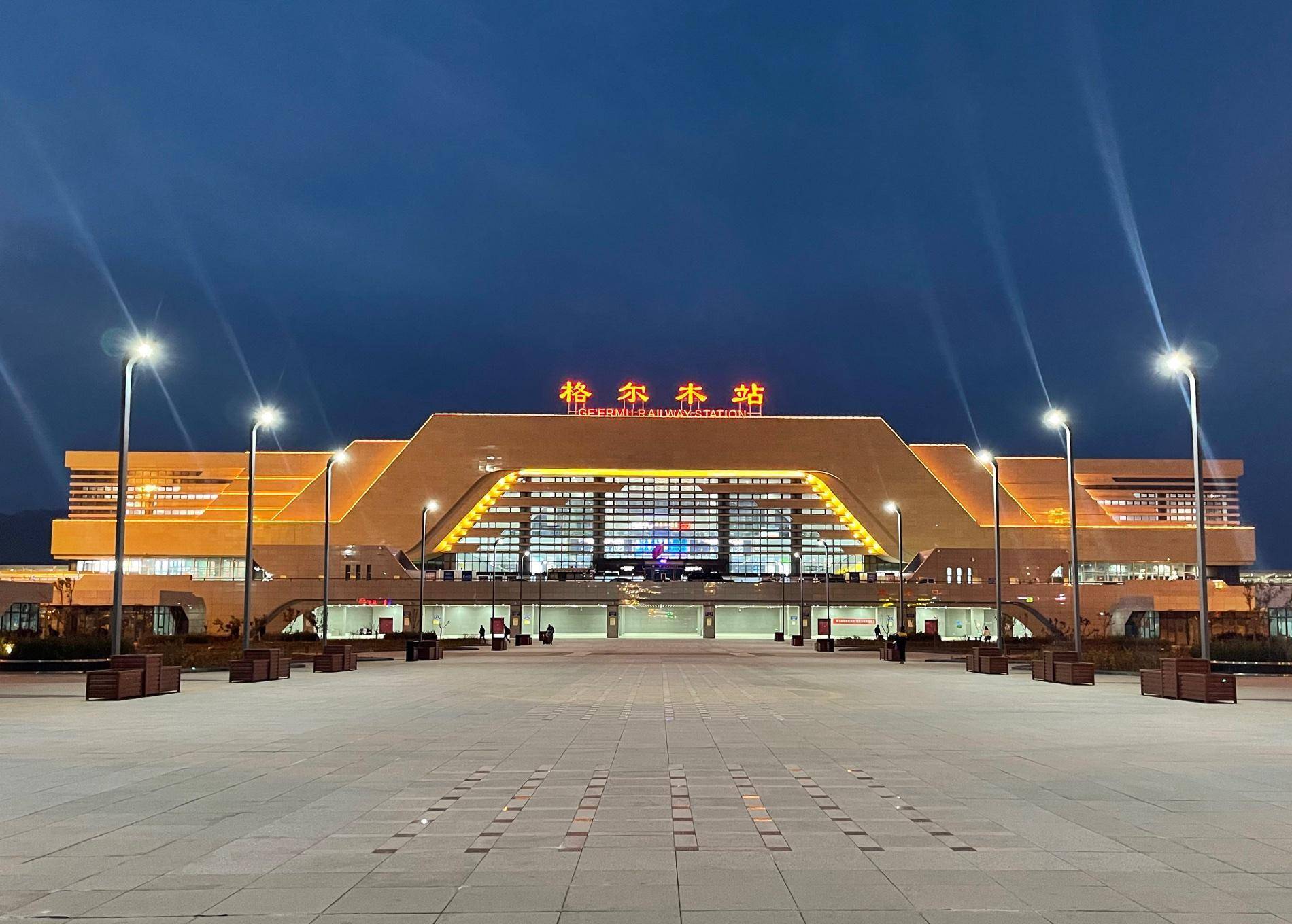 这是第二天早上拍摄的格尔木站,灯光真漂亮