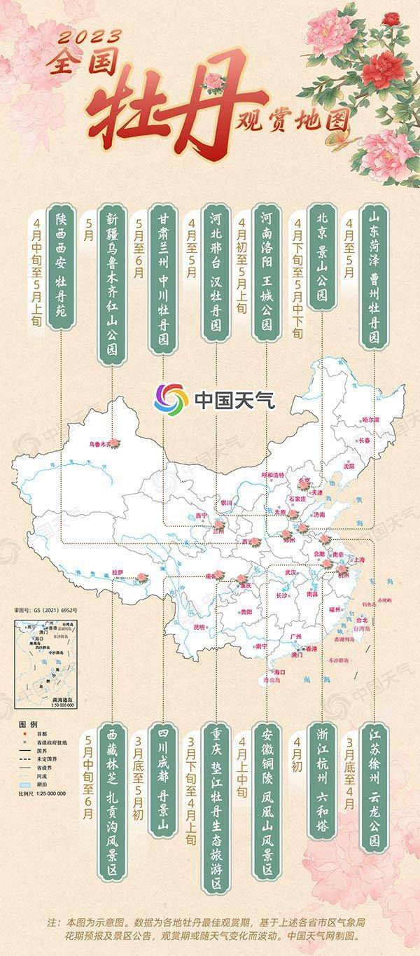 暮春时节,牡丹才陆续进入最佳观赏期,在百花争春大赛中压轴出场。从全国牡丹观赏地图可以看到,我国大江南北皆有牡丹可赏,花事可从暮春持续至初夏。
