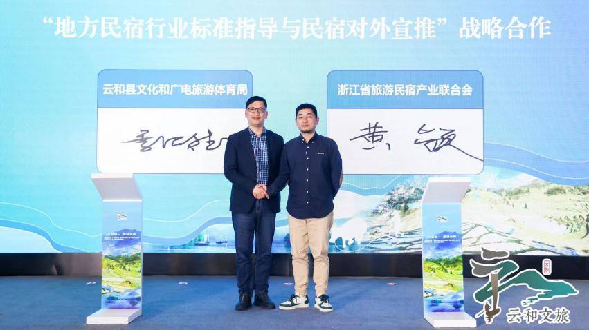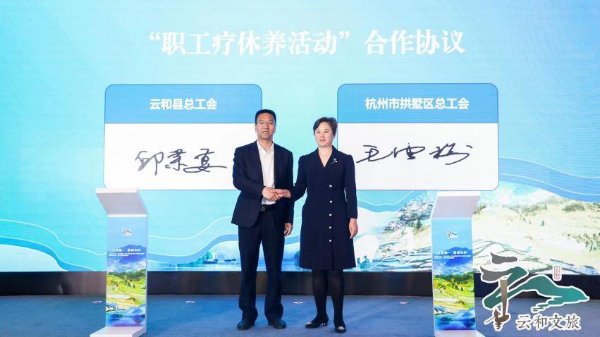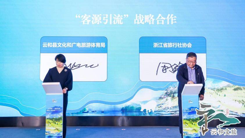 推介会现场,云和县文化和广电旅游体育局分别与省旅行社协会、省旅游民宿产业联合会签订了“客源引流”、“地方民宿行业标准指导与民宿对外宣推”战略合作协议,云和县总工会与杭州市拱墅区总工会签订“职工疗休养活动”合作协议,共同夯实做强文旅疗休养品牌优势,实现优势互补、市场互通、合作共赢。