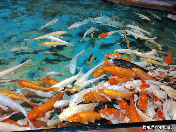 在门口能看见很多小朋友在给鱼喂食,锦鲤看见有食物,会蜂拥过来抢食物。