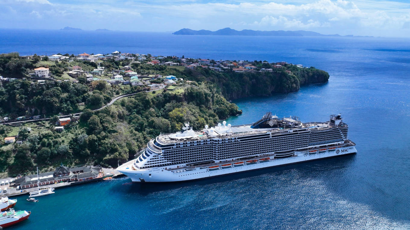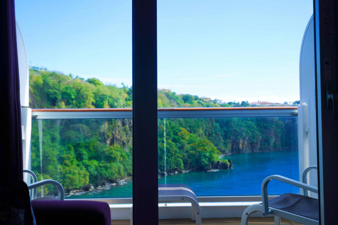 早上拉开窗帘,我坐的MSC海岸线号邮轮已经靠岸圣格,阳台上的海景相当不错。