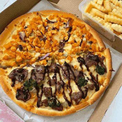 披萨炸鸡 现在越来越多的年轻人郊游时会选择带上披萨炸鸡。黑椒牛肉披萨、奥尔良鸡肉披萨、海鲜披萨、芝士披萨、水果披萨、榴莲披萨等等,每一款都获得了无数吃货的芳心。