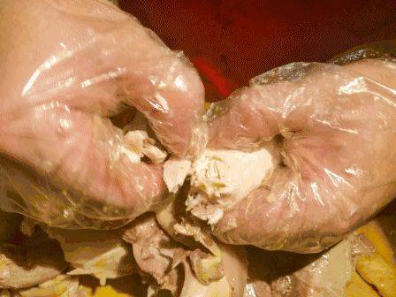 手抓肉也有专门从饭店买来的,打开包装盒盖子,肉还是热腾腾的。