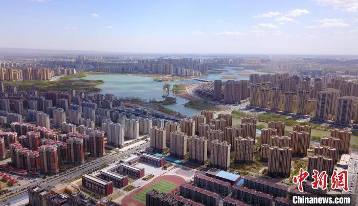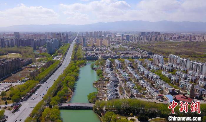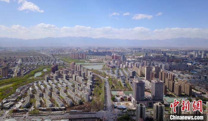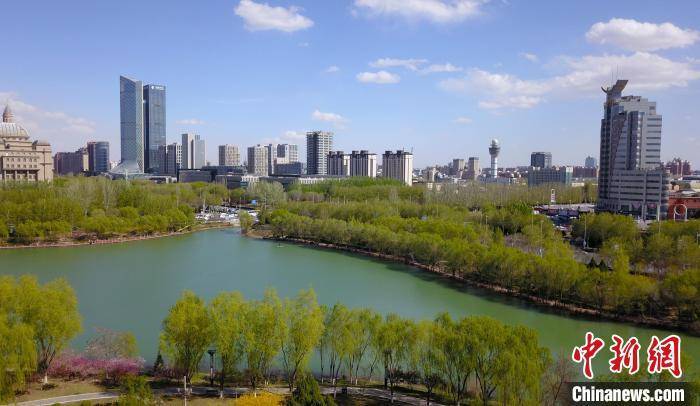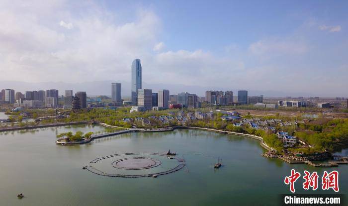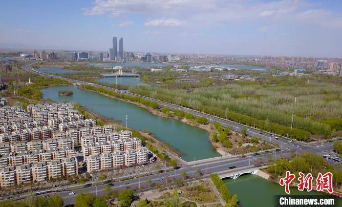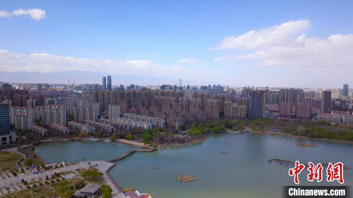 4月14日,宁夏银川市碧空如洗,蓝天、白云、碧水交相辉映,谱绘出一幅“城在湖中城愈美,湖在城中湖更秀”的塞上新景。