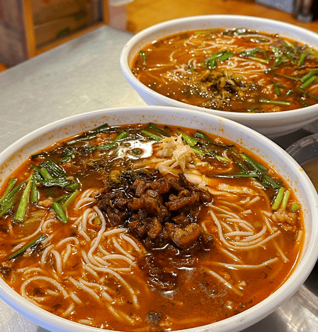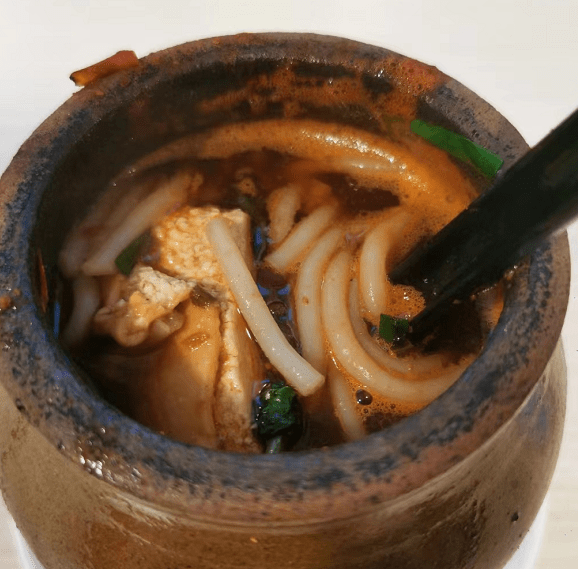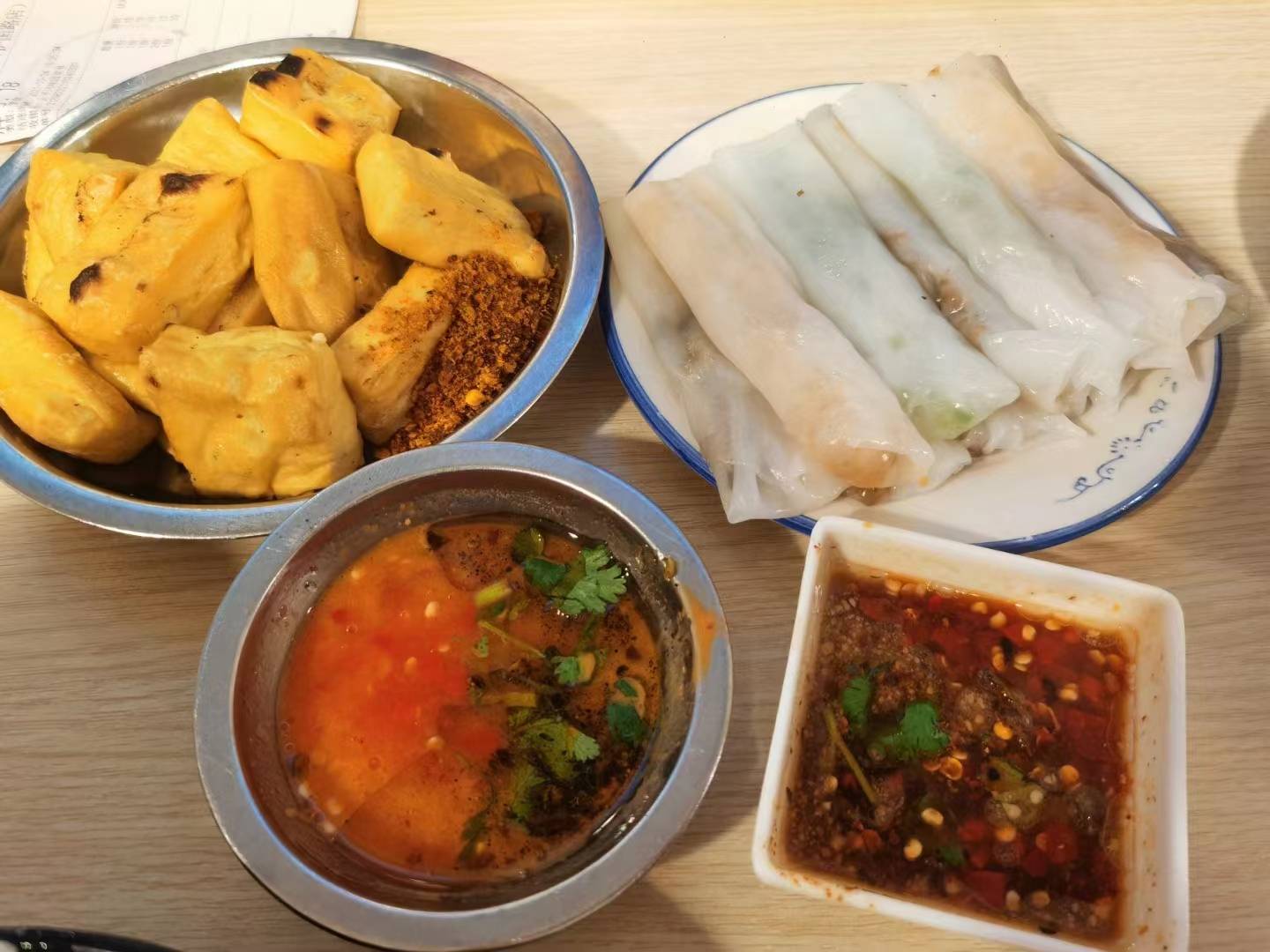 小锅米线是一碗一碗煮出来的,咕嘟咕嘟冒泡泡的独立金属制器皿中飘着一层扎实给力的肉沫,猛加红油用韭菜或者紫苏叶提香后,咕噜咕噜还冒着泡泡的一锅”人间值得”就出现在了你的面前。臭豆腐米线是一罐一罐煮出来的,臭豆腐是主角,米线只是搭配。臭豆腐是白色软糯一碰就碎的质地并且没有经过提前油炸等任何处理,因为味道比较大所以会放雪菜和韭菜提味,非常精彩。