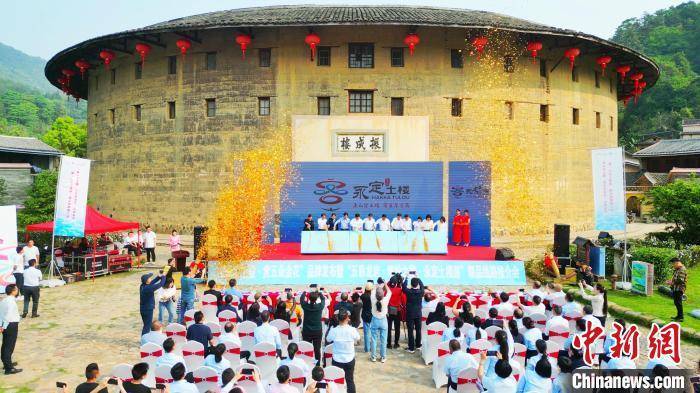 中新网福建永定4月14日电 (熊川 吴宇梁)“来永定土楼·赏五朵金花”品牌发布暨“五彩龙岩·缤纷之旅·永定土楼游”精品线路推介会,14日在福建土楼永定景区振成楼前举行。